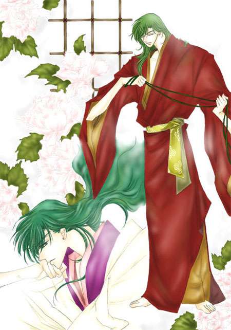 2004のホワイトデー企画に描かせて頂きましたイラストです。 これと友様オンリーのコミックも描きました。 どーしても友様の立ち姿を全部入れたくて、えらくでかく・・・重くなってしまいましたが 本人は気に入っています。 下側の横向き友様も一年たって見てもそんなには、おかしくないし・・・わはははははっ! 翌日見ておかしすぎるイラスト多いですからわたしゃ・・・ええ・・・ほほほほほほ。 また、来年も企画が出来たらいいな・・・と思っています。