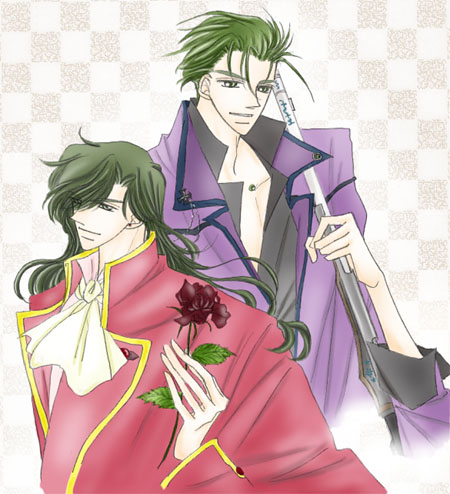 吸血鬼友様と吸血鬼ハンターの景時さん(へなちょこ)イラストです。